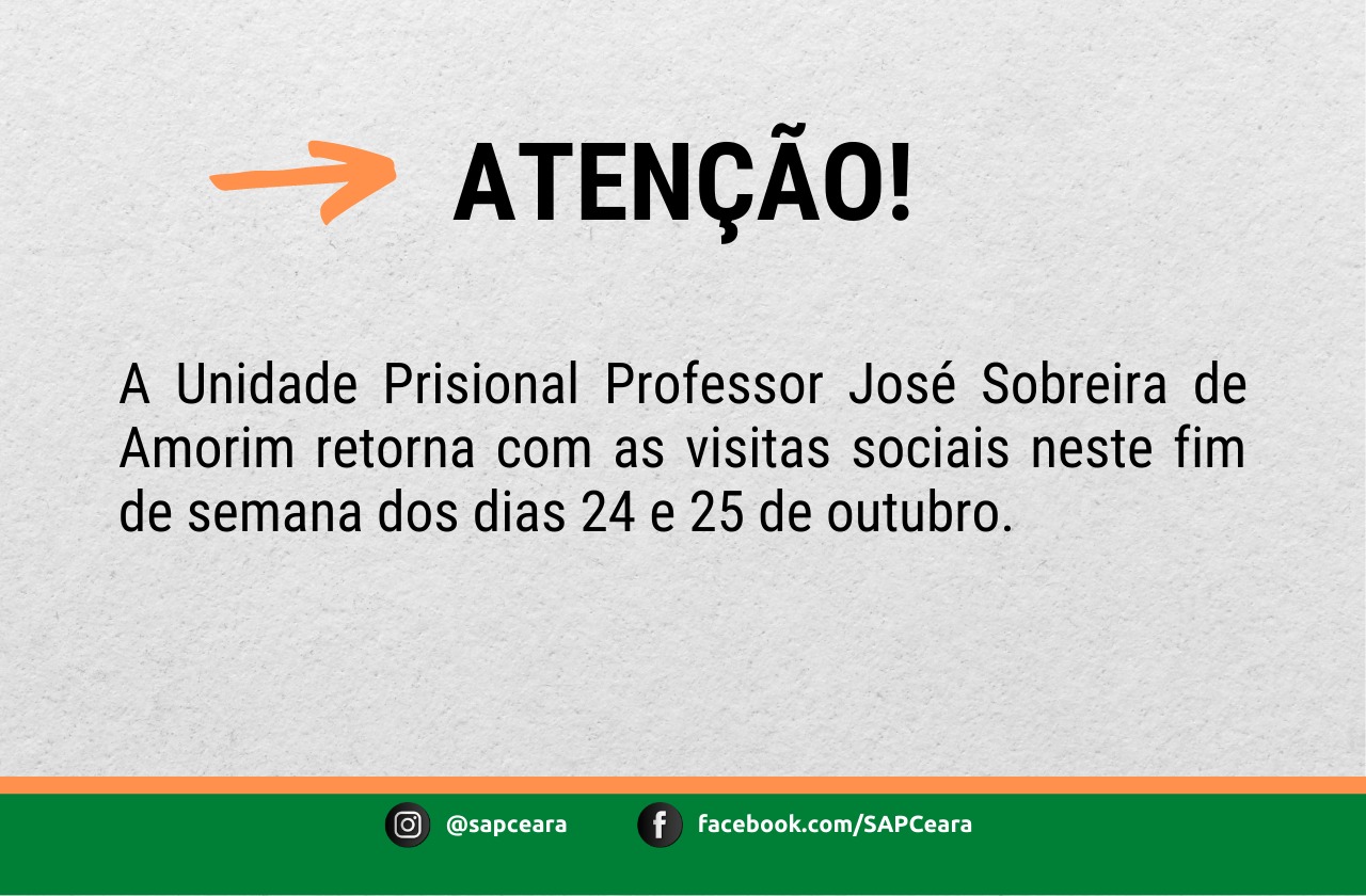 Sistema prisional Unidade Prisional Professor José Sobreira de Amorim está liberada para visitas neste fim de semana 22 de outubro de 2020 - 15:03 Voltar ao topo Compartilhar
