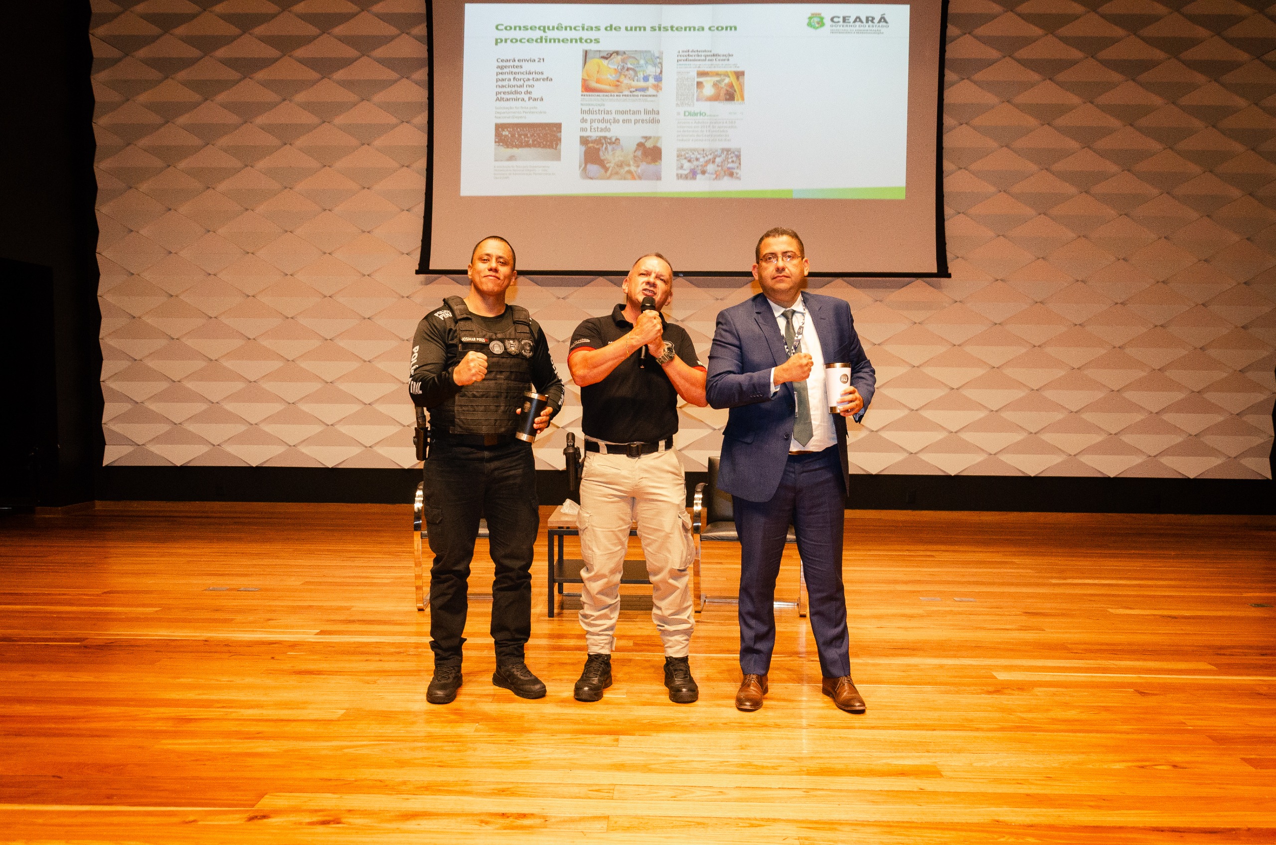 Na ocasião, estiveram presentes o secretário executivo Rafael Beserra, o coordenador adjunto especial de administração prisional do Ceará, Luiz Gouveia, e diretores de unidades prisionais cearenses. O evento também contou com a presença de representantes do Ministério da Justiça e Segurança Pública (MJSP), do Conselho Nacional de Justiça (CNJ), das Secretarias Estaduais de Administração Penitenciária (SEAP), da Polícia Penal Federal (PPF) e da Polícia Federal (PF).