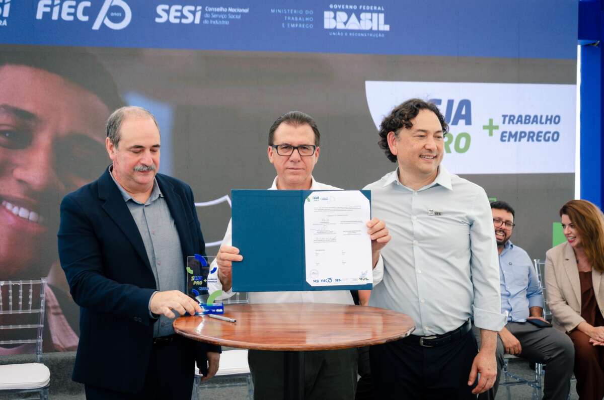 O sistema prisional do Ceará sediou, nesta segunda-feira (1), o lançamento nacional do Programa SEJA PRO+ Trabalho e Emprego no estado. A iniciativa, promovida pelo Ministério do Trabalho e Emprego (MTE), pelo Serviço Social da Indústria (Sesi) e pelo Conselho Nacional do Sesi (CN-Sesi), ofertará 1.500 vagas gratuitas de qualificação profissional para jovens cearenses, dentro de um total de 25 mil vagas disponibilizadas em todo o país. O programa combina a Educação de Jovens e Adultos (EJA) com cursos profissionalizantes voltados para trabalhadores de 18 a 29 anos que não concluíram a educação básica ou o ensino médio.