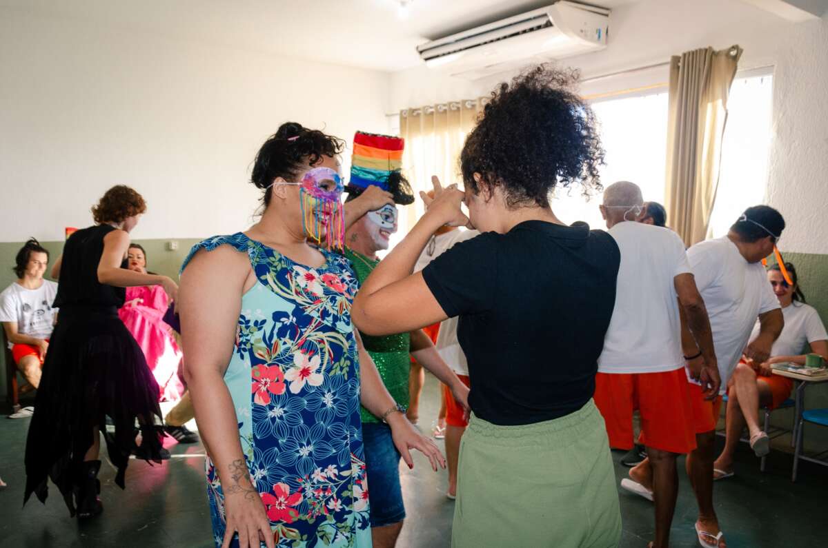 O terceiro e último dia foi dedicado à finalização do processo criativo. As máscaras retornaram como elemento central das atividades, agora associadas a figurinos, maquiagens, jogos teatrais e ações corporais. A partir dessa composição, foram criadas matrizes corporais e imagens performáticas, articuladas com palavras-chave e gestos que expressam reflexões sobre identidade, percepção interna e externa e modos de existir e se apresentar ao mundo.